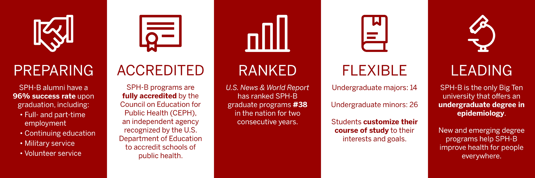 The Indiana University School of Public Health-Bloomington offers top-ranked academic programs that prepare students for challenging careers preventing disease and promoting wellness in our communities.